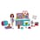 - Additional play pieces include 18 items like a pet bed, cat tower, medical instruments, clipboard, a cone, pump bottle, medicine bottle, pet crate, feeding dishes, dog treats, band-aid sheet and more.