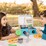 - Includes sliceable wooden fish, double-sided felt food, felt egg in a plastic egg shell, durable kettle, 2 cups with drink inserts, 2 plates, 2 sporks, collectible medallion, reusable activity book