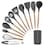 12PCS Set Silicone Utensils Wooden Cooking Kitchen Baking Cookware