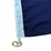 Designed with 100% bleed-through capability, the flag exhibits consistent coloration on both sides. It features four lines of reinforced stitching along the edges and is equipped with two brass sister clips attached to the rope. It's important to note that the clips on the flag are closed; hence, if you intend to mount the flag on a pole, please ensure that the clips on your pole are open.