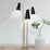 Modern, chic and versatile, this trio floor lamp is perfect for most living spaces. It features three brass poles secured in a round base with three black tapered metal shades that offer different lighting angles.