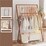The solid and sturdy hanging rod ensures clothes remain stable without any bending. The mushroom-shaped hooks are meticulously smoothed to prevent items from slipping. The high-quality imitation linen fabric is not only wear-resistant but also resistant to pilling, effectively utilizing the available space. The coat rack is sanded to reveal the natural texture of the wood, omitting any artificial spray paint.