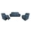 This impressive leather lounge suite with electric recliner action renovates your living area. The suite has two single-seater and one three-seater lounges. The suite in eye-soothing blue colour looks magnificent in a living area. The lounge setting, designed in a modern style, is the epitome of warmth and deep relaxation. The lounge suite features padded arms and a high-back design with additional lumbar support for added comfort and body support. A USB charger port keeps your digital devices running while you relax on the lounge. The recliner mechanism can easily bear a weight of up to 120 kg. The lounges are upholstered in soft and durable Murano leather, which is considered perfect for lounge furniture pieces. The seats are made of webbing and high-density foam based on pocket springs. The structural frame of the lounge set is composed of sustainably harvested plywood, which ensures its high durability. The frame has a five-year warranty; the foam and springs have a three-year warranty; the leather and stitching have a one-year warranty; the recliner mechanism and electric parts have a one-year warranty; and all other parts have a one-year warranty.