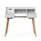 Classic white finish to desk and hutch area, natural wood tapered legs below