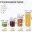 - This jar set comes with four size combinations to meet all your needs - 6 extra large (11.83 cups/2.8 liters), 6 large (8.45 cups/2.0 liters), 6 medium (5.92 cups/1.4 liters) and 6 small containers (3.38 cups/0.8 liters). From small to tall, you'll have the perfect jar for every occasion.