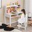 Give kids a great study area with our kids desk and chair set! The study writing desk and chair set has a 4-tier storage shelf and 2 open drawers, providing rich space for books, stationery and other items. Moreover, the wide desktop is suitable for learning, playing, drawing, eating, etc. And the cork bulletin board allows your kids to pin notes or display photos. Made of high-quality material and supported by solid wood legs, the children's learning table with chair is durable and sturdy. In addition, the simple appearance caters to kids' preference and blends with different home styles.