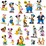 - Set features 22 figurines; Characters include: Mickey, Minnie, Figaro, Cuckoo-Loca, Fifi, Chip 'n Dale, Construction Goofy, Gardner Donald, Crossing Guard Pete, Engineer Mickey, Police Donald, Firefighter Pluto, Nurse Minnie, Popstar Minnie, Rockstar Mickey, Make-up Artist Clarabelle, Backstage Fan Daisy, Vacation Pluto, Vacation Minnie, Conductor Mickey, Bell Hop Goofy, & Ticket Collector Pete