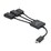 One males micro USB connects to one micro USB female and two USB 2.0 female for external devices.
