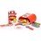 Includes peel, 4 pizza slices, felt toppings, toppings tray, cheese and pepper shakers, pizza cutter, spatula, menu, 2 plates, oven/storage box