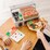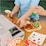 - Ingredients include cheese shaker, felt sauce and cheese, wooden crust, toppings; pieces stick with self-stick tabs