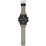 The band surface is processed to resemble a cloth band texture, and the hour and minute hands are shaped with points that make them resemble warning markers. All buttons have a checkered surface for surer operation, and the overall design is tough and rugged.