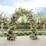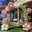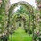 Metal arch gate looks even greater when decorated with flowers and bulbs for night lighting.