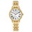 - True grace transcends trends and fads and can be appreciated across generations. This stunning piece epitomizes that notion with the additional benefit of intelligent technology, making a watch that is all about stylish performance. Powered by Eco-Drive, energy is obtained sustainably via any light source, providing ceaseless, reliable accuracy. The subtle texture of the crisp white dial with roman numeral indices framed by a gold stainless steel bezel defines elegance and, combined with the gold-toned band, makes for a beautiful and versatile watch.