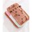 -Brown cookie shell is decorated with embroidered details and sandwiches a thick layer of squishy pink, white, and green ice cream