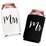 The set includes one white can cooler with "Mrs." printed in elegant black script and one black can cooler with "Mr." printed in a matching script.