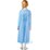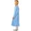 Digitally printed polyester dress to mid-calf height in shades of blue with mauve and silver highlights and feature pointed sleeve cuffs