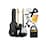 The electric guitar enclosed within the kit showcases a 22-fret neck, three single-coil pickups, and a whammy bar, rendering it adaptable to diverse genres and playing techniques. Additionally, the guitar exhibits a distinctive pickguard that adds a touch of style to its appearance.