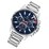 Experience accurate timekeeping with this Quartz Multifunction watch! It features a 45mm stainless steel case and 10.5mm case thickness. The 21mm band wraps snugly on your wrist, crafted with stainless steel material. A mineral crystal dial in captivating blue adds a touch of style. A push-button deployment clasp keeps the watch securely fastened and ready for action with a 3 ATM water resistance.