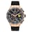 This luxurious timepiece features a stunning Ionic-plated rose gold zinc alloy case with a mineral crystal dial, encased in a sleek and sturdy 12.8 mm profile. Boasting a dazzling black dial, the band is crafted from black silicone and fastened by a tongue buckle. With a water resistance of up to 3 Atm, this quartz multifunction watch is sure to become your faithful companion on any journey.