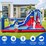 This dolphin theme water slide creates a memorable scene during the summer holiday! The bounce house is designed with attractive playing areas including long slide, climbing wall, splash pools, water cannon, basketball rim and ring-toss game, providing your little ones with infinite fun around all year. What you need to do is unroll the bounce house, attach the air hose to the blower and turn it on, secure the bouncer to the ground, and then your little ones can enjoy infinite fun at any time. Meanwhile, high-quality material with double sewing promises longer service life. This inflatable castle will leave precious and sweet memory for youth!