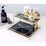 - Organize your makeup in style with this Classy Medium Makeup Shelf. Crafted with a plated metal basket and tempered glass, this shelf is both durable and stable. With two tiers of different widths and heights, you'll have plenty of space to store your cosmetics. The sleek gold wire basket and golden black marbling glass tray make it a beautiful addition to any countertop. Plus, no assembly is required - it's ready to use right out of the box. And, it's simple to clean with a damp cloth. Get organized and add a touch of class to your makeup routine with this Medium Makeup Shelf.