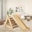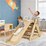 Including a 3-side triangle climber and a sliding board, this climbing toys set provides multiple playing ways for little ones. All corners are designed to be rounded and the surface has no burrs, ensuring safe use. With the natural solid wood materials and durable cotton, this triangle climber with sliding ramp is safe, stable and long lasting. And they are also certified by ASTM and CPSIA certification. This triangle climbing set is a great little ones' s gift to develop their motor skills.