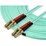 OM3 LC to LC Multimode Duplex Fiber Optic Patch Cable features 50/125 micron fiber and supports high-bandwidth data transmission over a 10-Gigabit Ethernet connection. With laser-optimized multimode fiber (LOMMF), it is ideal for connecting 850nm Vertical Cavity Surface Emitting Laser (VCSEL) and LED sources. High-speed connectivity on the aqua fiber-optic cable provides a high-bandwidth solution for your data centers or high-density applications. Maximum data-transfer rate is 100Gbps. Housed in a LSZH (Low-Smoke, Zero-Halogen) flame-retardant jacket, this fiber-optic cable ensures minimal smoke, toxicity and corrosion when exposed to high sources of heat or in the event of a fire. Use in a wide range of environments, including industrial settings, central offices and schools as well as residential settings. OM3 fiber cable is individually tested and certified to be within acceptable optical insertion loss limits for guaranteed compatibility and reliability.Features
