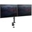 The attractive dual monitor mount utilizes a contoured design made of durable aluminum, with an attractive high gloss black finish. The two-monitor arm securely supports two VESA mount (75x75, 100x100) monitors up to 32" , with a weight capacity of 17.6 lb. (8 kg) per monitor.