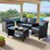 ALFORDSON Outdoor Furniture 4PCS Patio Chairs Table Set Wicker Black w/ Pillows