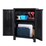 Outside, the weatherproof Storage Cabinet features premium plastic construction with corrugated panels for both reinforced support and stylish looks. Security and safety is also enhanced with lockable doors that can be secured with a range of locks. Not least, the entire unit stands on large stilted feet to keep it away from floods, spills or wet floors.