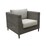 This eye-catching armchair is designed especially for outdoor spaces. The chair in grey wicker frame and light grey fabric embellishes the outdoor areas. Designed in a Hampton style, the sofa has ample seating space. It is upholstered in high-performance 100% polyester fabric. Sunproof brand fabric upholstered cushions are finished with piped edges. Fabric is weather-proof, water-repellent, stain-resistant, and UV-protected. The seat has full nylon-woven webbing support for extra strength and comfort. The upholstery has a smooth fit due to the intact tailoring on the precision-cut and long-lasting aluminium and full-round synthetic rattan wicker frames. The high-strength wicker supported by a non-rust aluminium frame makes the furniture piece light-weight and resilient. The easy-to-assemble outdoor furniture is durable as well. The frame comes with a 5-year warranty; the wicker comes with a 5-year warranty; and the fabric and foam come with a 2-year warranty.