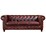 This 3-seater sofa in antique red creates a cosy space in your living area. The sofa, designed in a classic chesterfield style features button tufting, rolled arms and stud details. It beautifies any interior decor style due to its colour and evergreen design. Upholstered in top grain full leather, the sofa gives a nice look. Its structural frame is made of sustainably harvested Malaysian Hardwood, a sturdy solid wood. The high-density foam and zig-zag springs ensure the best seating support. Solid wood legs in dark walnut colour give it a strong base. The sofa is durable as well. The frame has a five-year warranty; the foam and springs have a three-year warranty; the leather and stitching have a one-year warranty; and all other parts have a one-year warranty.