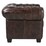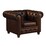 This armchair in Antique brown creates a cosy space in your living area. The furniture, designed in a classic chesterfield style features button tufting, rolled arms and stud details. It beautifies any interior decor style due to its colour and evergreen design. Upholstered in top grain full leather, the armchair gives a nice look. Its structural frame is made of sustainably harvested Malaysian Hardwood, a sturdy solid wood. The high-density foam and zig-zag springs ensure the best seating support. Solid wood legs in dark walnut colour give it a strong base. The armchair is durable as well. The frame has a five-year warranty; the foam and springs have a three-year warranty; the leather and stitching have a one-year warranty; and all other parts have a one-year warranty.