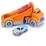 It's off to the races with the Green Toys Racing Truck! The 3 piece set includes a bright orange Racing Truck and 2 Stack & Link Racers. The pocket-sized racers are the perfect size for babies and toddlers, but are filled with fun for any age. The unique design allows for the cars to be used individually, stacked together, or linked in a chain. Each car also sports unique texture detailing for tactile stimulation. Hook the racers to the back of the Racing Truck's extendable ramp, and when ready, release the car (or cars!) to zoom down! With no metal axels or small parts, the set is great for both indoor and outdoor play, and encourages motor skill development and imaginative, creative play.