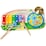 - Includes drum, chimes, xylophone, and cymbal built into a wooden board, 2 drumsticks, and 3 double-sided music cards