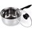 14cm Stainless Steel Milk Pot with Glass Lid Coffee Warmer w Handle
