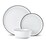 - MONOCHROME DINNERWARE: contrasting black rim detail takes this set up a notch