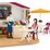 1 x Café, 1 x Boy Tom fully flexible, 1 x Tom's Pinto Stallion Pino, 1 x Girl Emily fully flexible, 1 x waiter's apron, 1 x rose trellis, 1 x menu board, 1 x advertising sandwich board, 1 x golden bowl, 1 x counter, 1 x display cabinet, 1 x oven, 1 x shelf, 1 x coffee machine, 1 x cash register, 1 x ceiling light, 2 x bistro table, 4 x chair, 1 x sunshade, 4 x cup, 4 x plate, 4 x slice of blueberry pie, 4 x slice of apple pie, 4 x cupcake, 2 x whipped cream, 3 x bottle of lemonade, 2 x glass with straw, 2 x winner rosette, 2 x flower vase, 2 x bouquet of flowers, 1 x tethering bar for horses, 1 x hay rack, 1 x drinking trough, 1 x halter, 2 x apple, 1 x saddle, 1 x bridle and reins, 1 x feeding box, 1 x sticker, 1 x assembly instructions