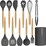 Set of 12 Silicone Utensils Set Wooden Cooking Kitchen Baking Cookware ~ Grey-Black