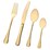 The distinctive hammered finish in a mirror polish and gold titanium coating brings a little sparkle to your table. High quality stainless steel.Casual place setting for six: