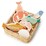 A market basket filled with fresh-caught wooden seafood items. The set comes with 7 different wooden items.