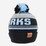 multicoloured pom-pom and a PU leather tag,