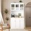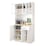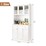 Create space for food preparation, additional storage, and small appliances by using this kitchen pantry cupboard. The upper glass door cabinets are the perfect spot for small items like spice jars or cans. The middle countertop offers spacious room for a microwave, coffee maker or toaster. The bottom cabinets keep small appliances, tableware, and food out of sight. It can also be a buffet sideboard in the dining room to store dishware, wine, and drinks or a display cabinet in the living room to showcase books, collections, and decorations. Made of premium quality particle board and glass, this piece of furniture is strong and durable enough to serve for many years.