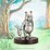 The scene's transition to 3D reveals the best friends from the other side. Conversing away, content in each other's company, the pair's every nuance in expression is captured in pewter as they take their constitutional on a wood composite base stained a handsome walnut.