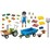 Set includes 1 man figure, 1 tractor with trailer, 4 tetra packs, 3 apples, 2 salads, 1 pepper, 1 cucumber, 5 transport boxes, 1 pitchfork, 2 cauliflower, 2 loaves of bread, 1 egg, 1 garlic, 1 carrot, 1 pasture basket and 1 potato basket.