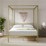 The Zinus Gold Metal Framed Canopy Platform bed with four canopy posts, makes a statement bedroom centerpiece. This easy to assemble platform bed features steel slats that provide strong support for your mattress. This canopy bed frame is 35cm high with 33.cm clearance under the frame for valuable under bed storage.