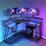 Furb L Shaped Gaming Desk with LED Lights Corner Computer Desk Carbon Fiber Table with Monitor Shelf
