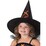 Witch hat is pointed with a broad rim and matching orange ribbon trim