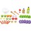 36 piece wooden food set. Features 10 salad ingredients including felt salad leaves and wooden vegetables, plus 3 condiments including dressing and oil in bottles, a bowl and serving utensils.