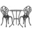 -Made of cast aluminium with cast iron, the table and chairs set are designed to be rust-resistant with a powder-coated finish.